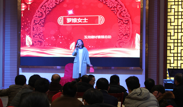 會(huì)議伊始,玉龍建材董事長(zhǎng)張軍民先生對(duì)前來參會(huì)的各位領(lǐng)導(dǎo)及經(jīng)銷商、代理商伙伴們表示熱烈的歡迎。張董用數(shù)據(jù)總結(jié)過去,并針對(duì)2018年做出了規(guī)劃,表示玉龍建材將在2018為廣大客戶提供更優(yōu)質(zhì)的服務(wù)和保障。