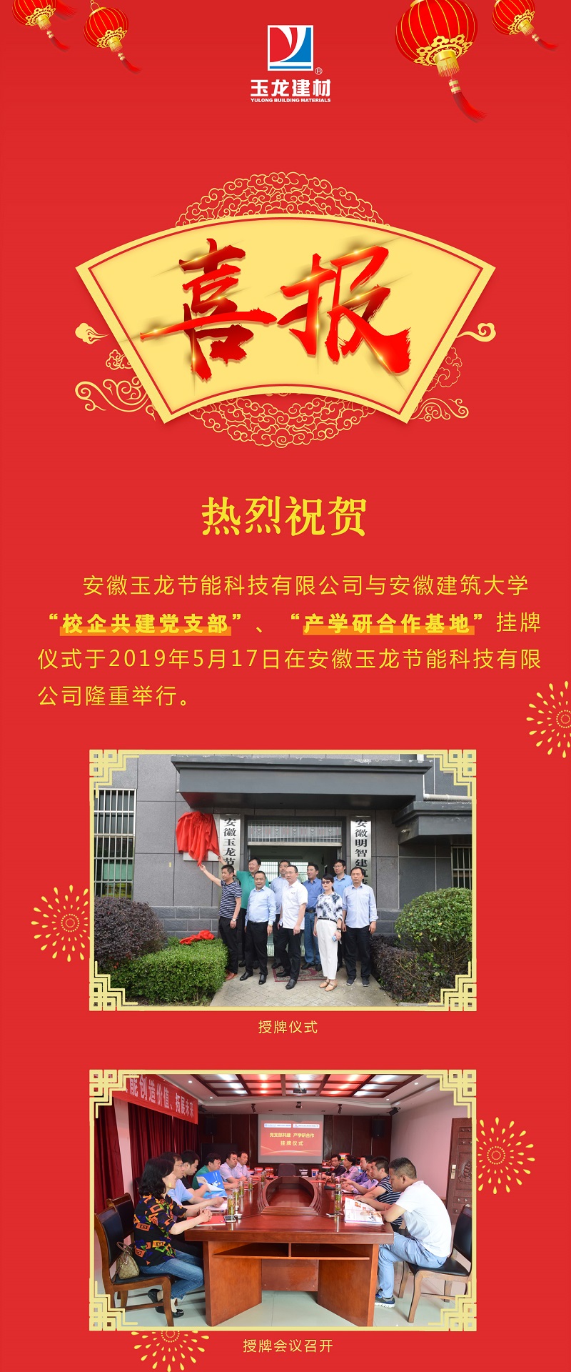 【喜報】恭喜玉龍建材喜提校企合作!