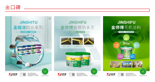 在研發(fā)團隊的共同努力下,金師傅系列產(chǎn)品線在原有家裝“防開裂”“防脫落”“防水”及其他功能性裝修材料領(lǐng)域基礎(chǔ)上延伸出“內(nèi)外墻乳膠漆”“水性工業(yè)漆”“環(huán)保膠黏劑”“防腐地坪漆”等細分產(chǎn)品。