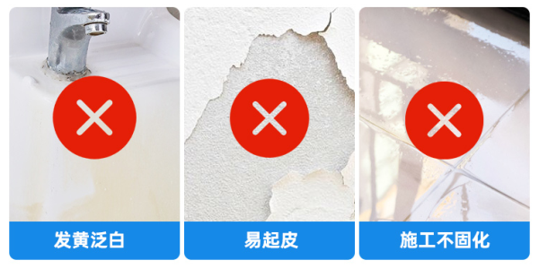 普通防水膠固化能力不足,且遇水浸泡后,容易出現(xiàn)發(fā)黃泛白、起皮脫落等情況。