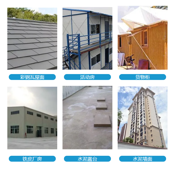 ◎ 適用于水泥、砂漿抹面、各類聚合物砂漿抹面,混凝土抹面、磚墻、木板鋅鐵瓦或金屬制品屋面、水泥石棉板材飾面的防水、降溫、隔熱。