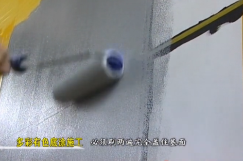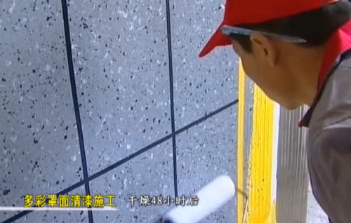 干燥48小時后,需輥涂多彩罩面清漆兩遍,整體效果完成。