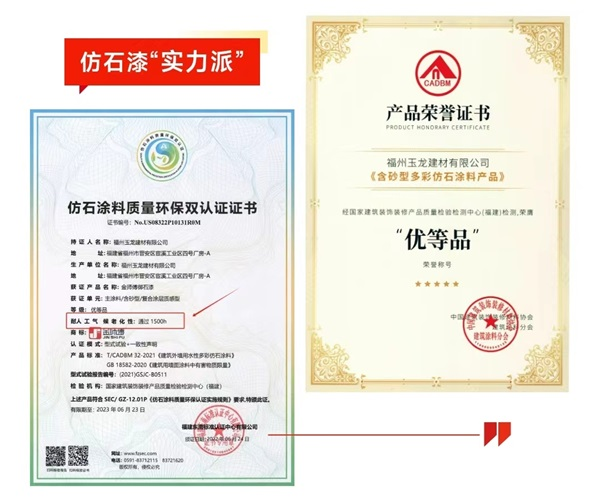 憑借強大的產(chǎn)品實力,金師傅御石漆先后斬獲仿石涂料行業(yè)國家“仿石涂料質(zhì)量與環(huán)保雙認(rèn)證”證書并榮膺“優(yōu)等品”等多項榮譽稱號。這些都將成為支撐銷售的有力武器,助力加盟伙伴更好地開拓市場、成交業(yè)績。