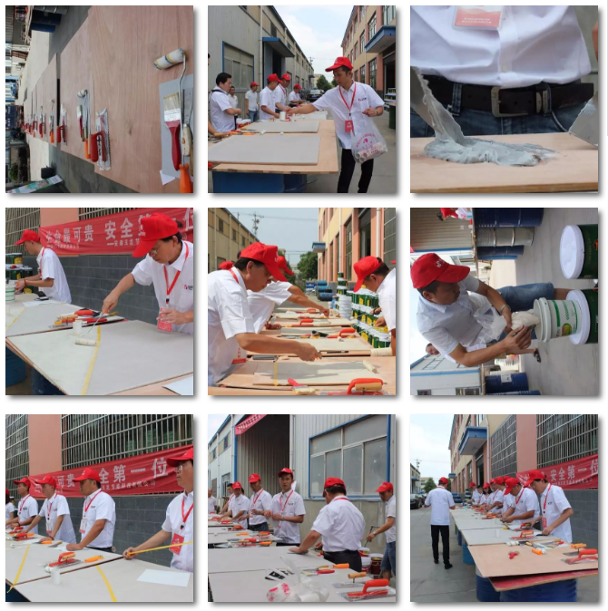 實踐課,學員全員積極參與,自己動手制作防水多功能樣板。除此之外,學員們還親自體驗了接縫專家、界面劑、墻固等一系列熱銷產品的操作。