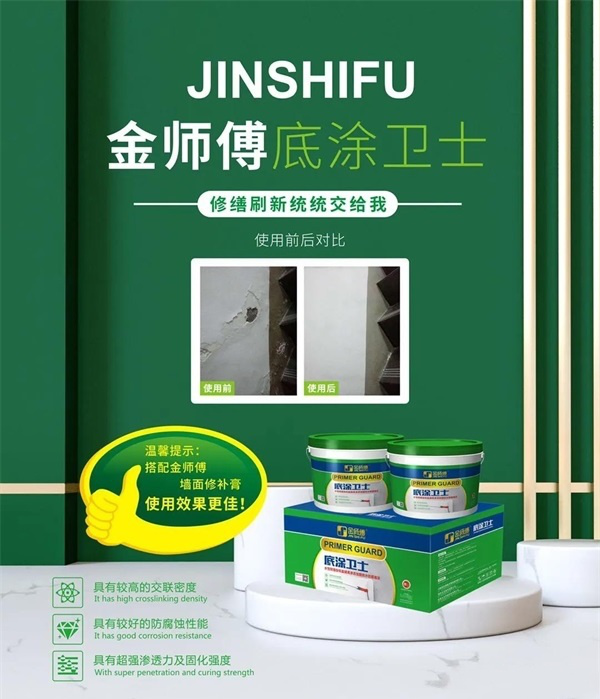 較的高交聯(lián)密度、較好的防腐蝕性能、超強(qiáng)滲透力及固化強(qiáng)度,金師傅底涂衛(wèi)士三效合一從源頭預(yù)防霉堿的滋生,實(shí)現(xiàn)了標(biāo)本兼治的霉堿解決方案,避免二次返工翻修,省錢(qián)更省心。長(zhǎng)霉、泛堿、膩?zhàn)用摎?、基面疏松等基面?wèn)題,請(qǐng)使用【金師傅底涂衛(wèi)士】!把返堿霉變的問(wèn)題,從事后修補(bǔ)提升到工藝預(yù)防的高度。
