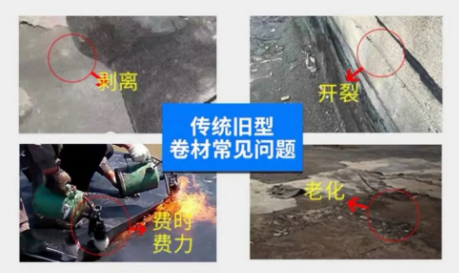 使用防水卷材的屋面時間久了,難免會出現(xiàn)一定程度的老化,最常表現(xiàn)為表面的不同程度的收縮、開裂或自粘防水卷材出現(xiàn)收縮和腐爛。防水卷材老化的收縮、腐爛又會影響防水層,使前期的防水施工功虧一簣。