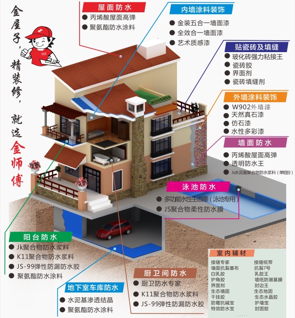 金師傅產(chǎn)品覆蓋建筑內(nèi)外墻涂料(多彩仿石漆、真石漆、質(zhì)感漆)、金師傅防水涂料、水性工業(yè)漆(防腐、地坪等)、干粉砂漿、金師傅裝飾輔材(防開裂、防脫落輔材)、建筑膠粘劑(改性硅烷MS膠、環(huán)氧膠黏劑、聚醋酸乙烯酯膠黏劑等)、熟膠粉原粉等產(chǎn)品,給您周全的裝修輔材選擇方案。有需求福州防水涂料廠家,福州裝飾輔材廠家的敬請聯(lián)系。